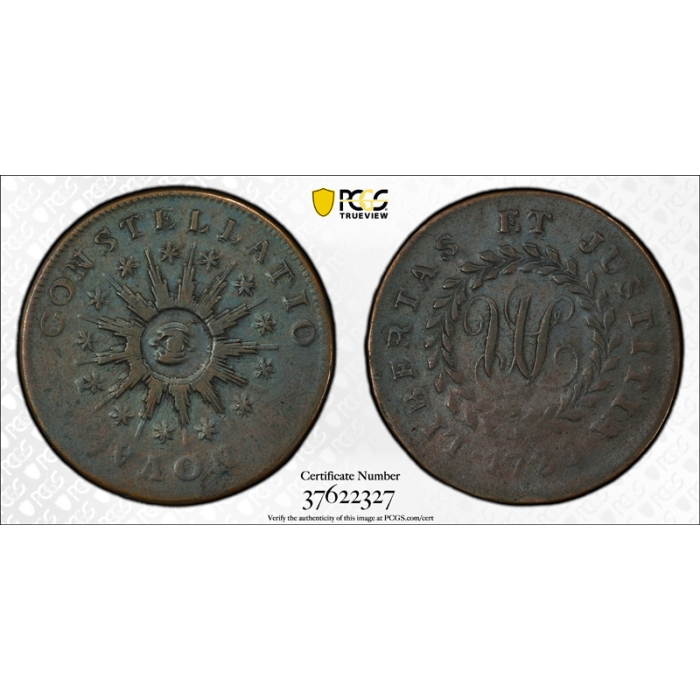 Description / 1785 C Nova Pointed Rays Colonials - Nova Constellatio Coins PCGS F 15 Fine to VF