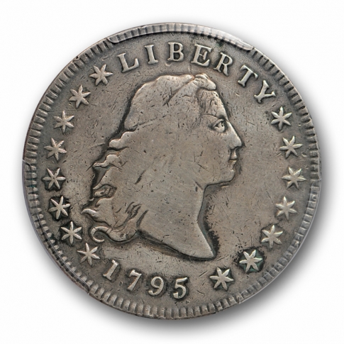 Description / 1795 $1 3 Leaves Flowing Hair Dollar PCGS F Fine Details Professional Plug