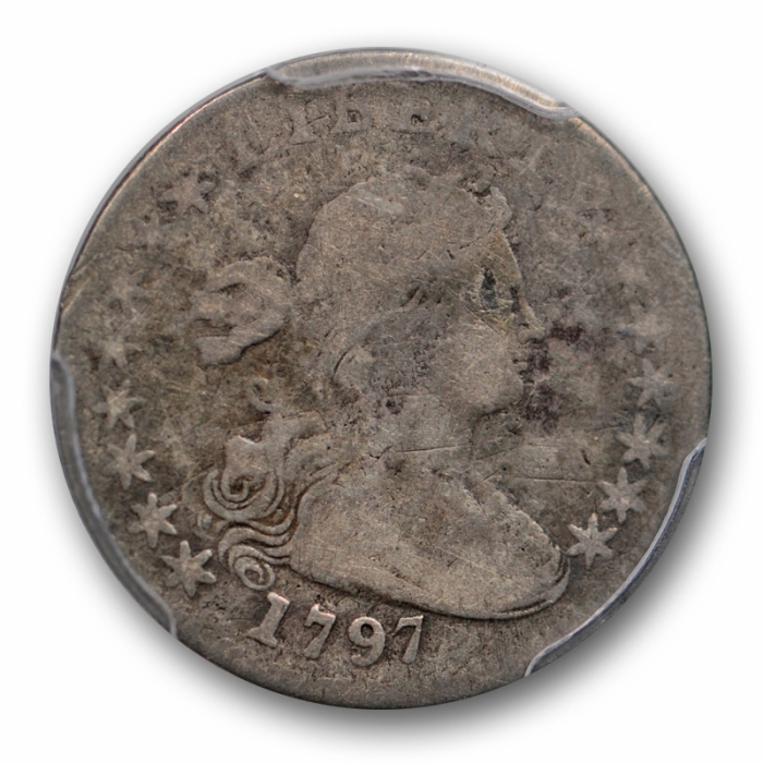 Description / 1797 Draped Bust Half Dime PCGS G 4 Good US Type Coin 15 Stars H10C