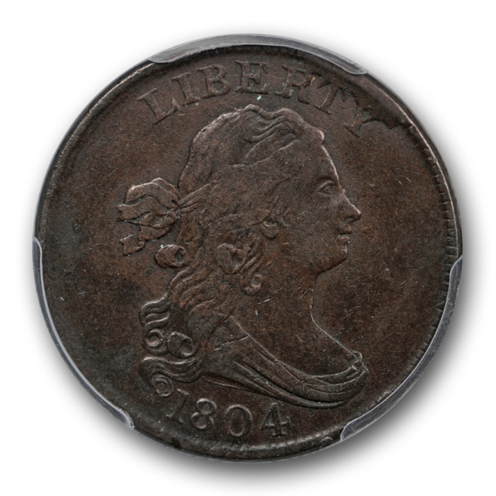 1804 1/2C Draped Bust Half Cent PCGS VF 35 Crosslet 4, Stems Cert5294