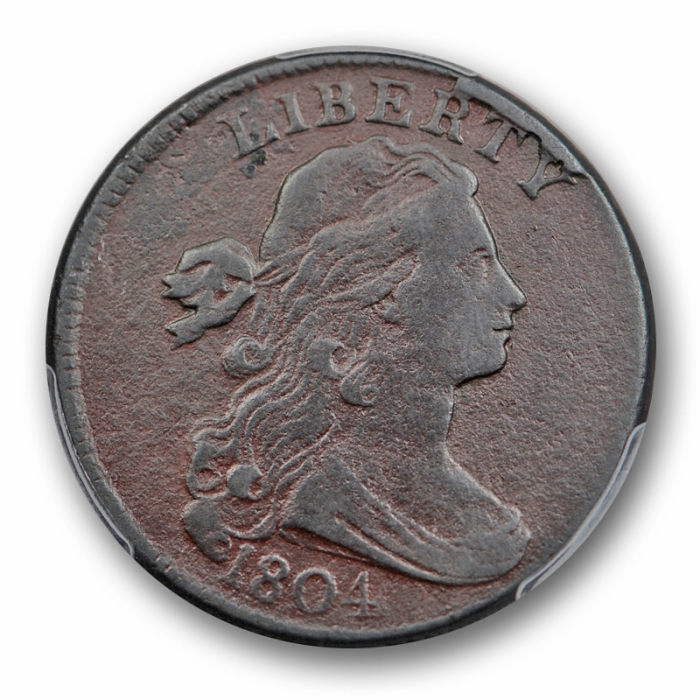 Description / 1804 1C Draped Bust Large Cent PCGS F Fine Details Key Date Looks VF !