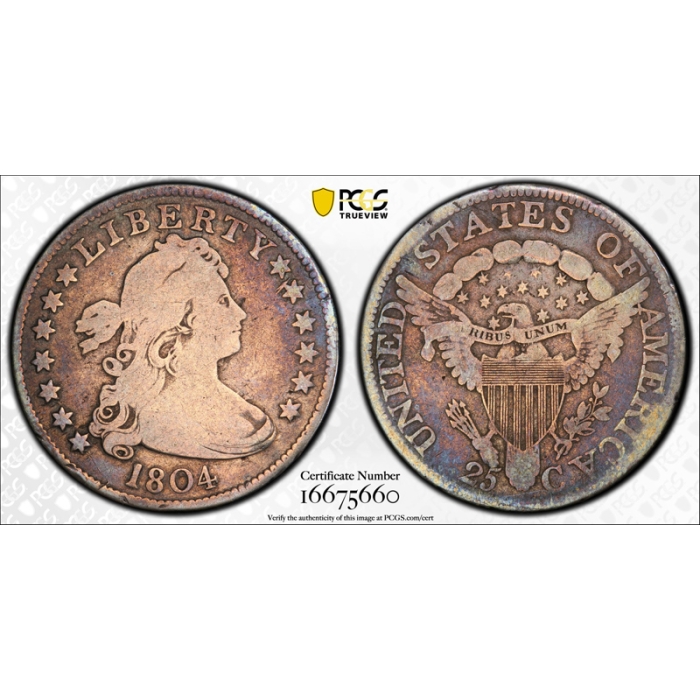 Description / 1804 25C Draped Bust Quarter PCGS VG 10 Very Good to Fine Key Date Toned !