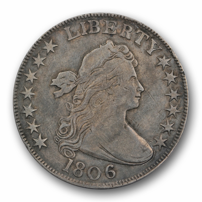 1806 50C Draped Bust Half Dollar Very Fine VF Knob 6, Small Stars Variety