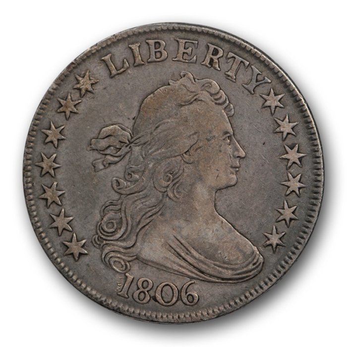 1806 50C Draped Bust Half Dollar Very Fine VF Pointed 6, Stem Overton 114a R 5
