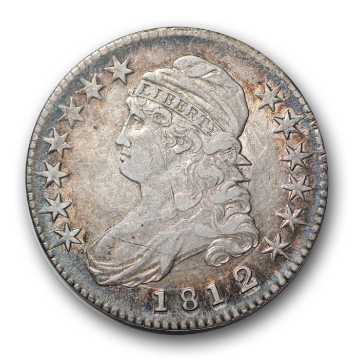 Description / 1812/1 50C Small 8 Capped Bust Half Dollar Extra Fine XF Scratched R12