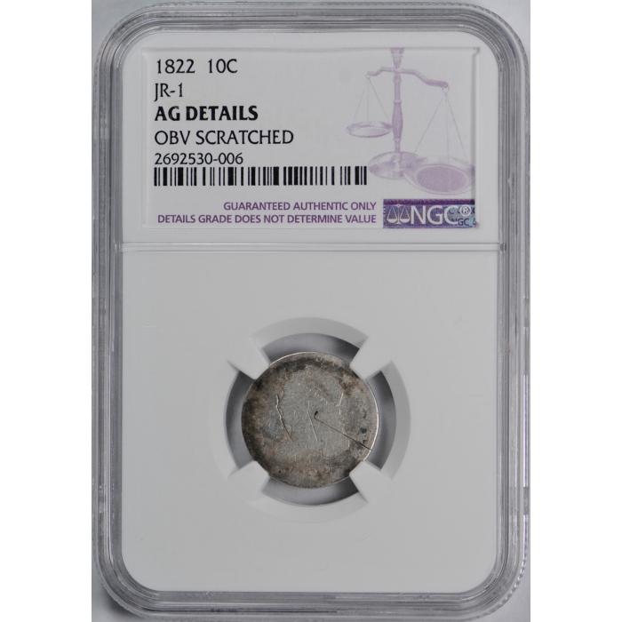 Description / 1822 Capped Bust Dime NGC AG About Good Details Obverse Scratched