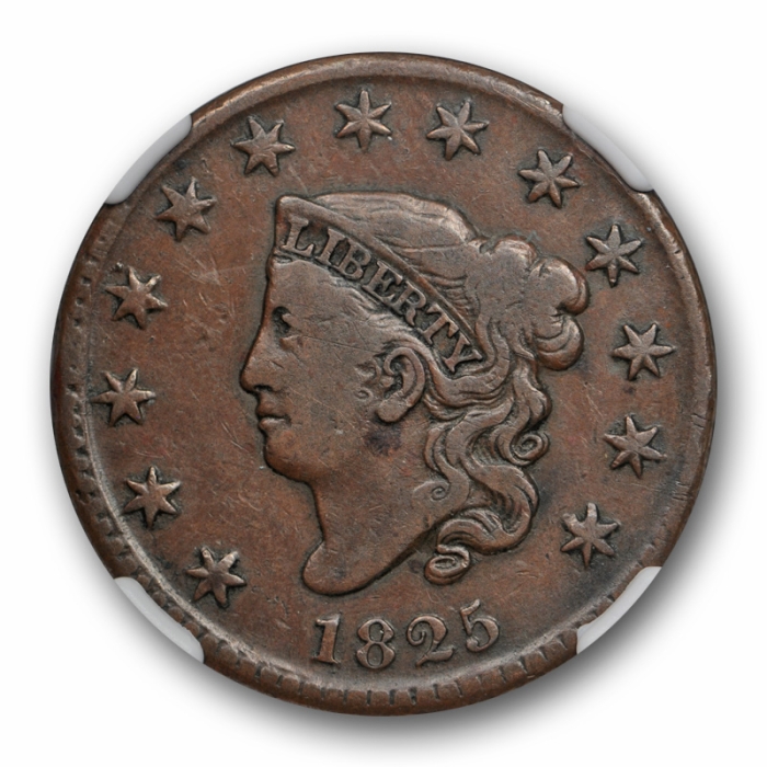 Description / 1825 1c Coronet Head Large Cent NGC VG 8 BN Very Good Original Early Copper