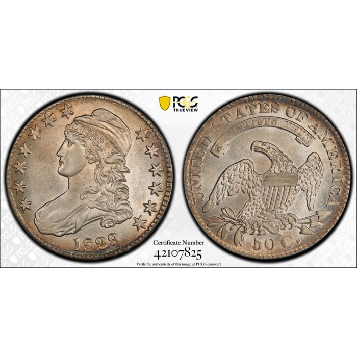 Description / 1829 50C Capped Bust Half Dollar PCGS AU 55 Overton 103 O-103 Small Letters