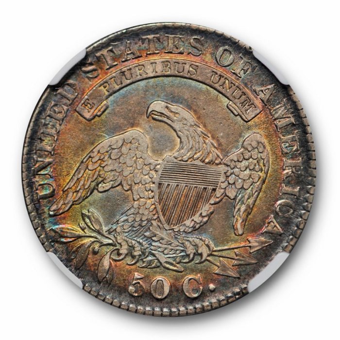 Description / 1830 Small o Capped Bust Half Dollar O 115 NGC XF 45 Colorful Toned Reverse
