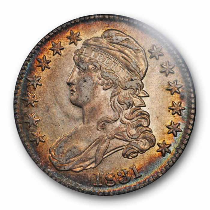 Description / 1831 Capped Bust Half Dollar NGC AU 58 About Uncirculated Toned Cert#0001