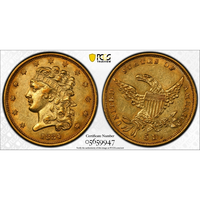 Description / 1834 $5 Classic Head Half Eagle Gold PCGS AU 55 About Uncirculated Exceptional !