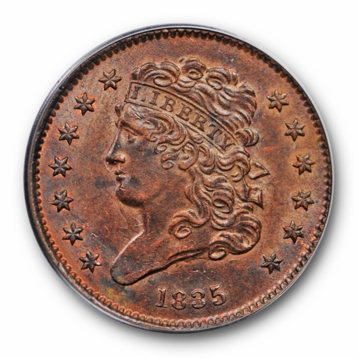 Description / 1835 1/2C Classic Head Half Cent PCGS MS 63 BN Brown US Type Coin Cert83508
