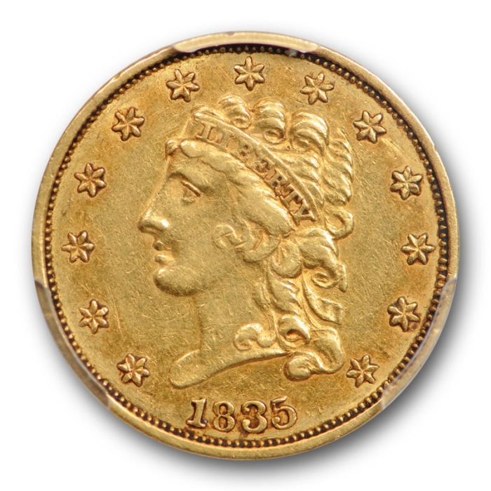 Description / 1835 $2.50 Classic Head Quarter Eagle Gold PCGS AU 50 About Uncirculated Attractive !