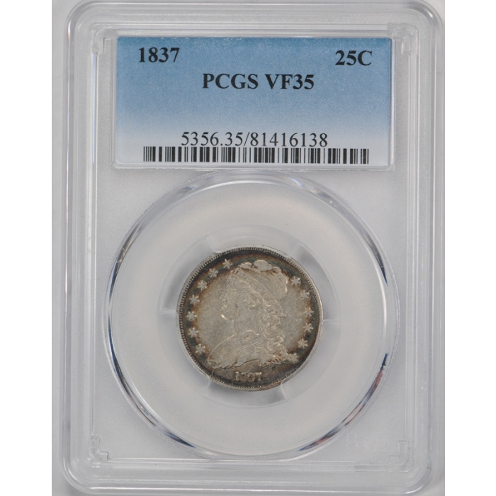Description / 1837 25C Capped Bust Quarter PCGS VF 35 Very Fine to XF Toned