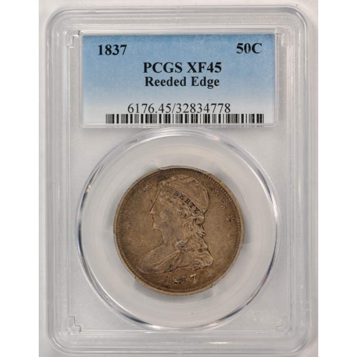 Description / 1837 50C Reeded Edge Capped Bust Half Dollar PCGS XF 45 Original Toned
