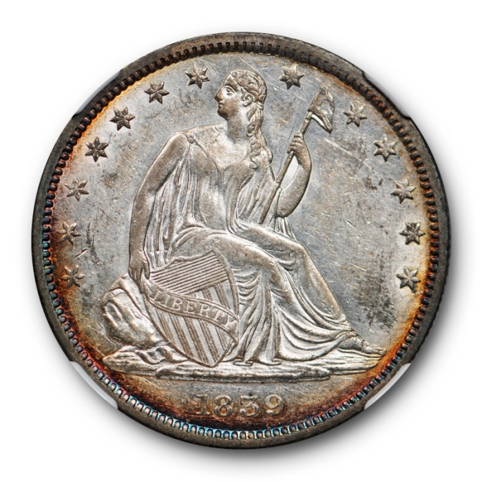Description / 1839 Seated Liberty Half Dollar NGC AU 55 About Uncirculated Toned Beauty