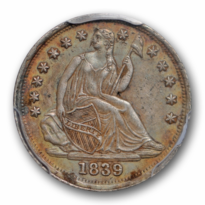 Description / 1839 H10C Seated Liberty Half Dime PCGS AU 53 About Uncirculated Toned