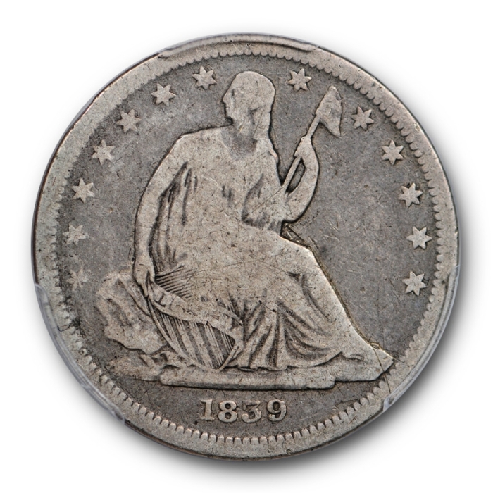 Description / 1839 No Drapery Liberty Seated Half Dollar PCGS VG 8 Very Good Original