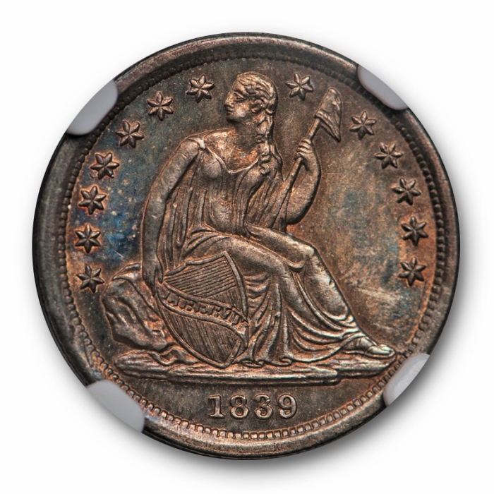Description / 1839 Seated Liberty Dime, No Drapery 10C NGC MS 62 Uncirculated Toned