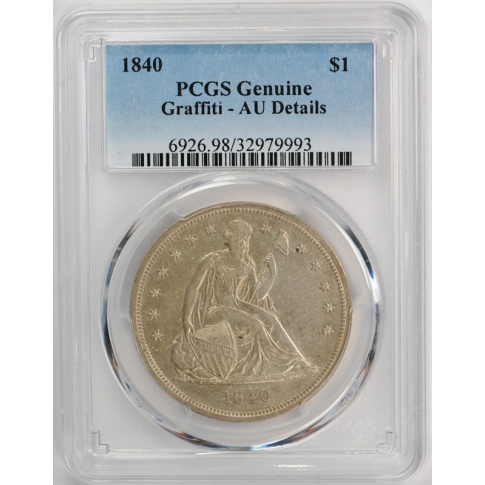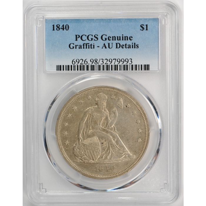 1840 $1 Liberty Seated Dollar PCGS AU About Uncirculated Graffiti Coin