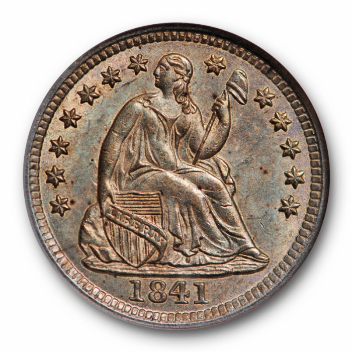 Description / 1841 Seated Liberty Half Dime NGC MS 65 Uncirculated Toned Old Fatty Holder