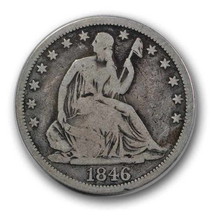Description / 1846-O 50C Tall Date Liberty Seated Half Dollar Very Good VG Full Rims R830