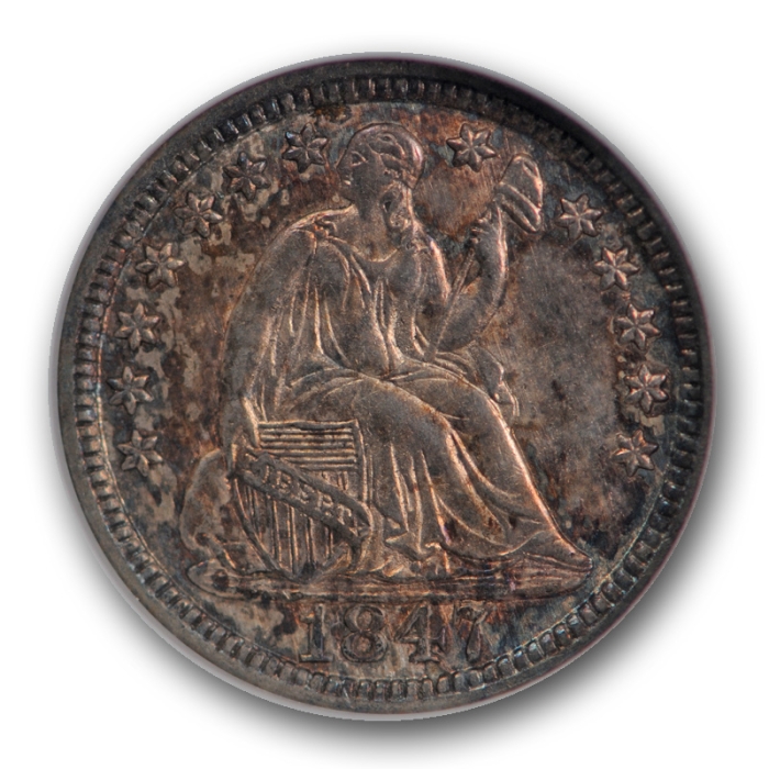 Description / 1847 H10C Liberty Seated Half Dime NGC AU 58 Toned About Uncirculated