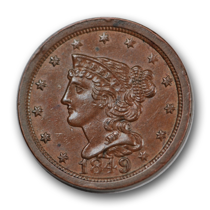 1849 1/2C Braided Hair Half Cent About Uncirculated AU Original R1106