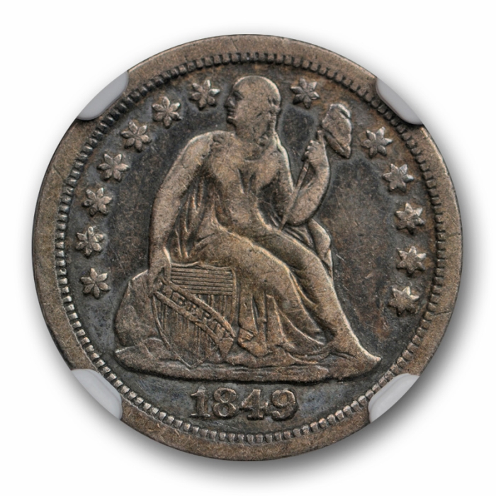 Description / 1849 O 10c Seated Liberty Dime NGC VF 20 Very Fine Original Toned Small O Original