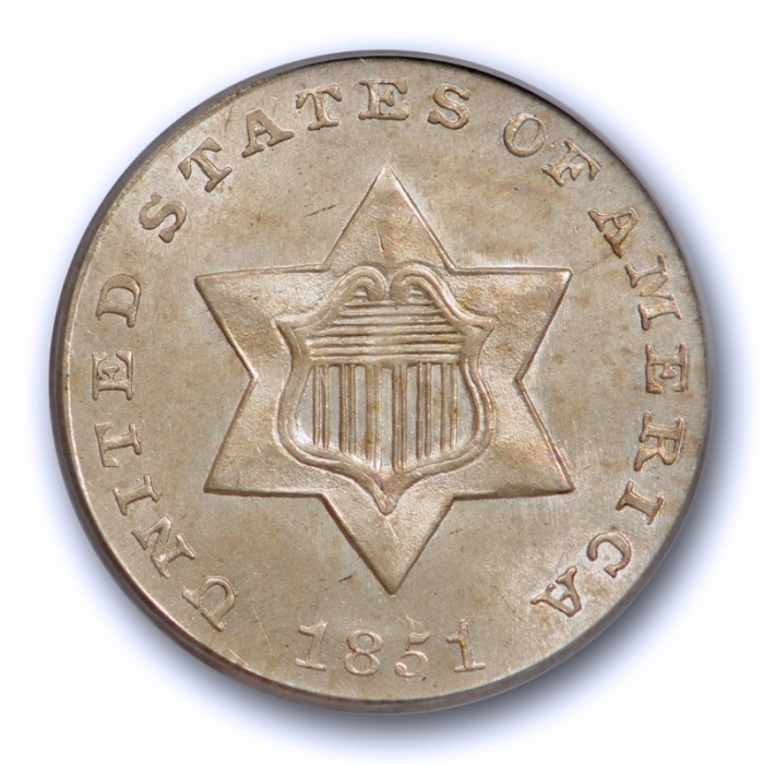 1851 3CS Three Cent Silver PCGS MS 65 Uncirculated Lightly Toned US Type Coin