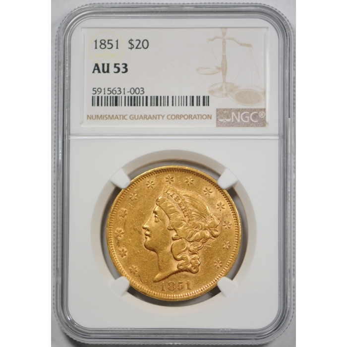 1851 $20 Liberty Head Double Eagle Gold Piece NGC AU 53 About Uncirculated Coin
