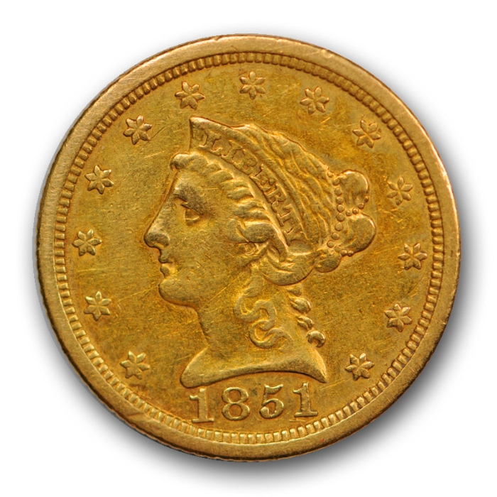 Description / 1851-O $2.50 Liberty Head Quarter Eagle Gold Extra Fine XF New Orleans R549