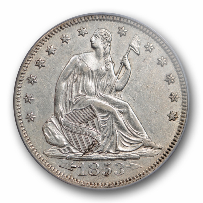 Description / 1853 50c Seated Liberty Half Dollar PCGS AU 53 About Uncirculated