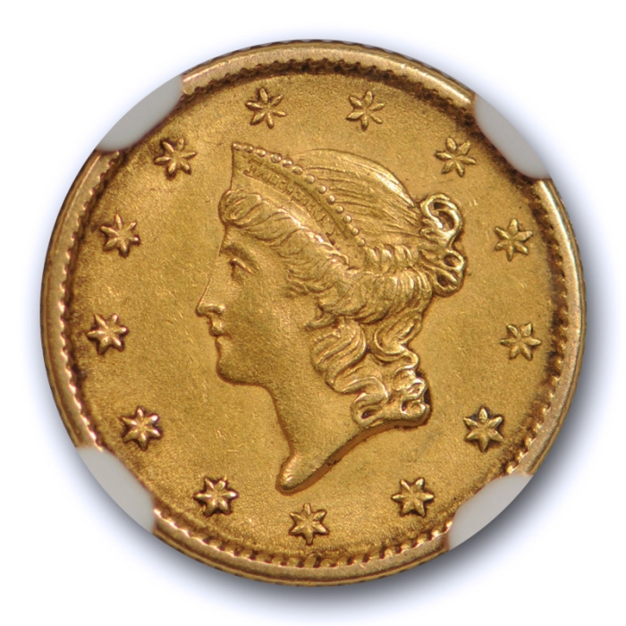 Description / 1853 G$1 Liberty Head Gold Dollar NGC MS 61 Uncirculated Original US Type Coin