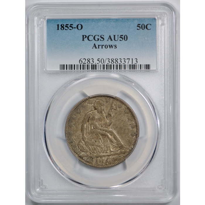 Description / 1855 O 50C Arrows Seated Liberty Half Dollar PCGS AU 50 About Uncirculated Toned
