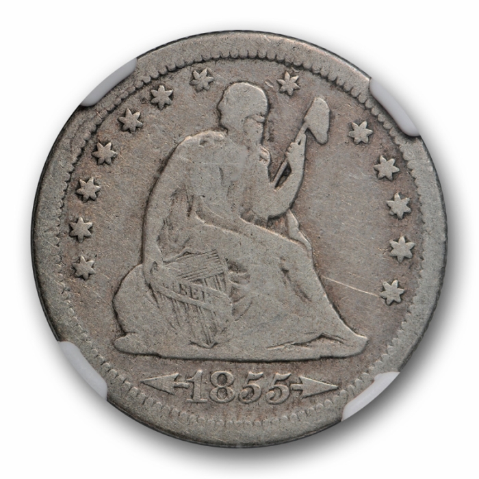 Description / 1855 S 25c Seated Liberty Quarter NGC VG 8 Very Good Better Date San Francisco Mint