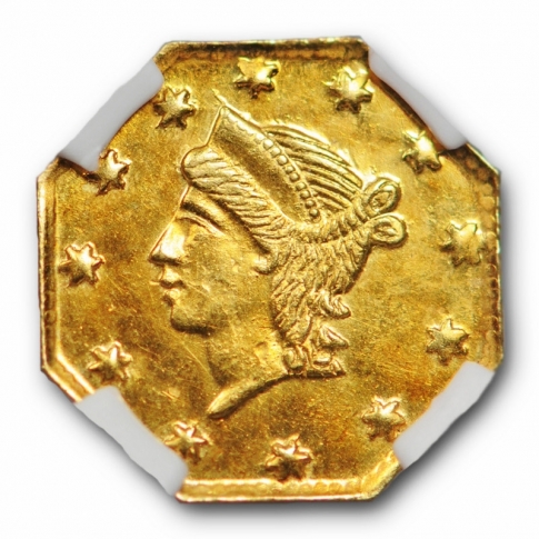 Description / 1856 California Fractional Gold Piece NGC MS 64 Uncirculated BG 111 Octagonal