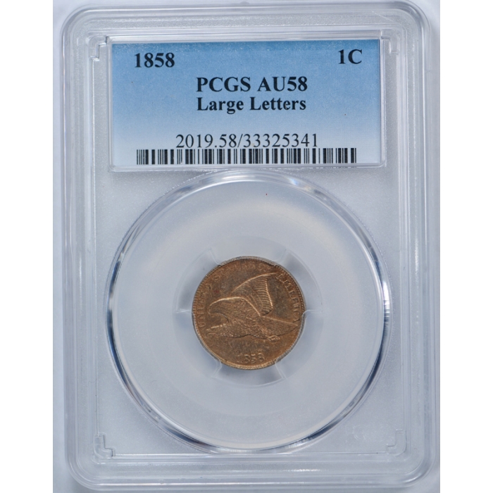 Description / 1858 1C Large Letters Flying Eagle Cent PCGS AU 58 About Uncirculated Registry Coin