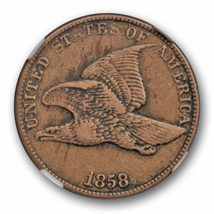 Description / 1858 Large Letters Flying Eagle Cent NGC XF 45 Extra Fine Original