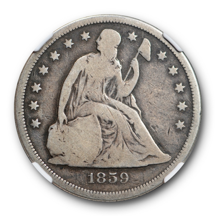 Description / 1859 O $1 Seated Liberty Dollar NGC VG 8 Very Good No Motto US Type Coin