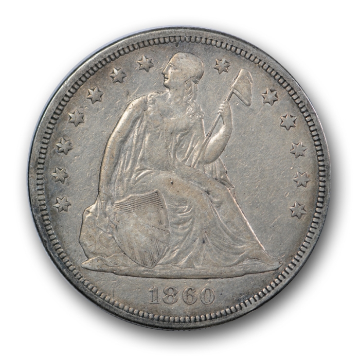 Description / 1860 $1 Liberty Seated Dollar Very Fine to Extra Fine P Mint Tough R36