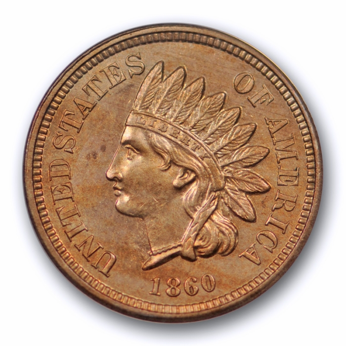 Description / 1860 1C Pointed Bust Indian Head Cent ANACS MS 62 Uncirculated Excellent Strike !