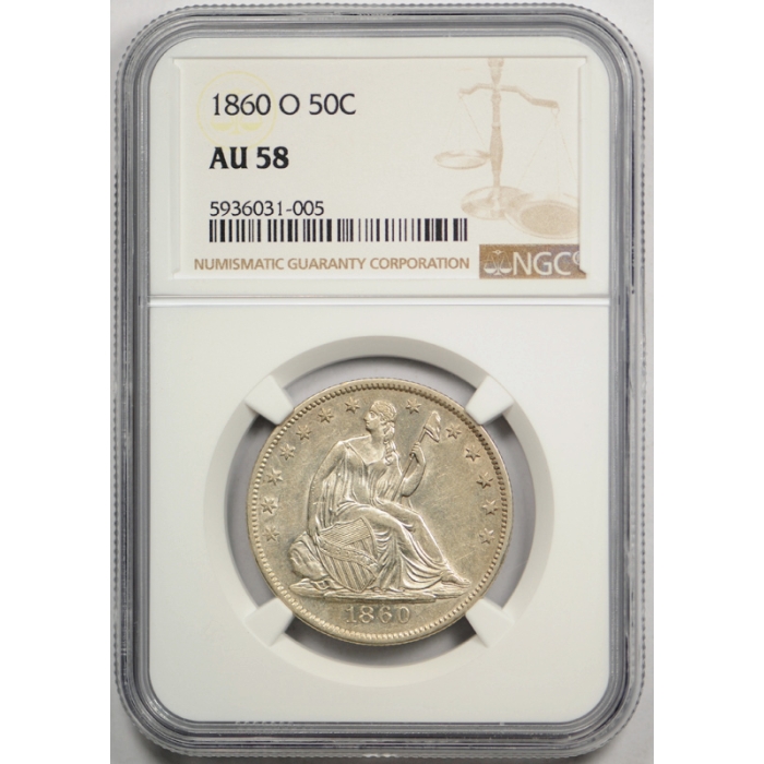 1860 O 50c Seated Liberty Half Dollar NGC AU 58 About Uncirculated Better Date