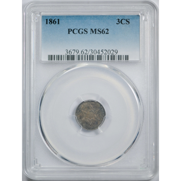 1861 3CS Three Cent Silver Piece PCGS MS 62 Uncirculated Civil War Era Date !
