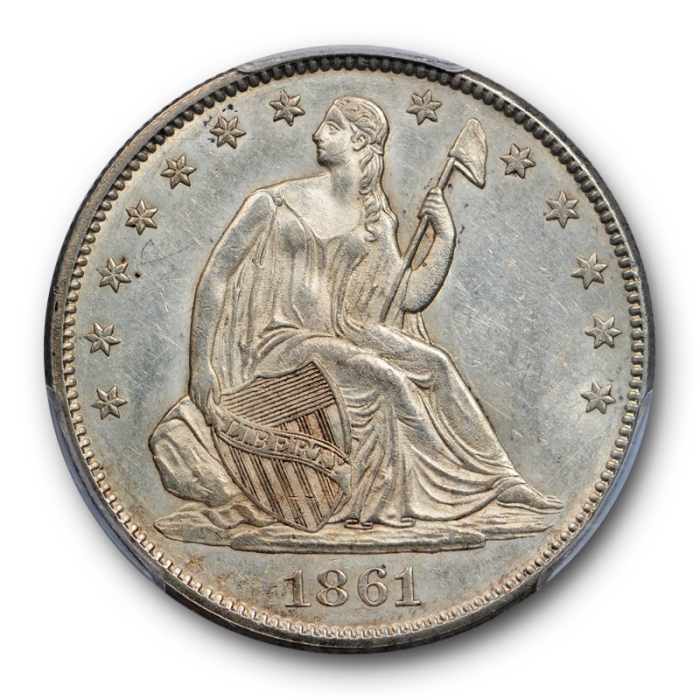 Description / 1861 50C Seated Liberty Half Dollar PCGS AU 58 About Uncirculated Sharp