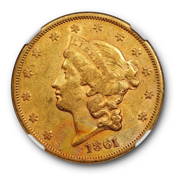 Description / 1861 Liberty Double Eagle Type 1 $20 NGC AU 50 About Uncirculated Toned