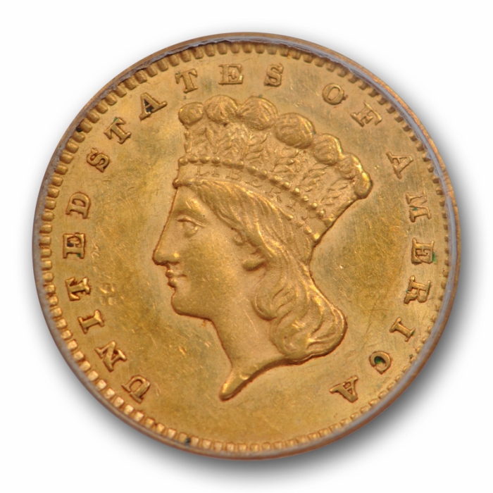 Description / 1862 G$1 Gold Dollar PCGS MS 62 Uncirculated Princess Head Civil War Date Cert#8796