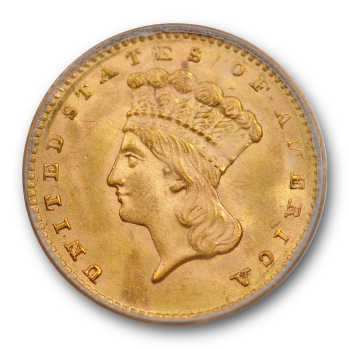 Description / 1862 G$1 Gold Dollar PCGS MS 63 Uncirculated Gold Princess Indian Head