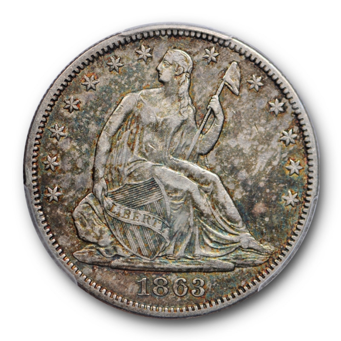 Description / 1863 50C Seated Liberty Half Dollar PCGS XF 45 Extra Fine to AU Toned