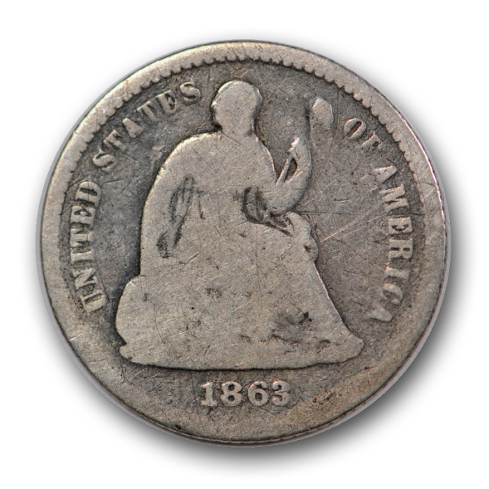 Description / 1863 H10C Liberty Seated Half Dime Good G Philadelphia P Mint R1034